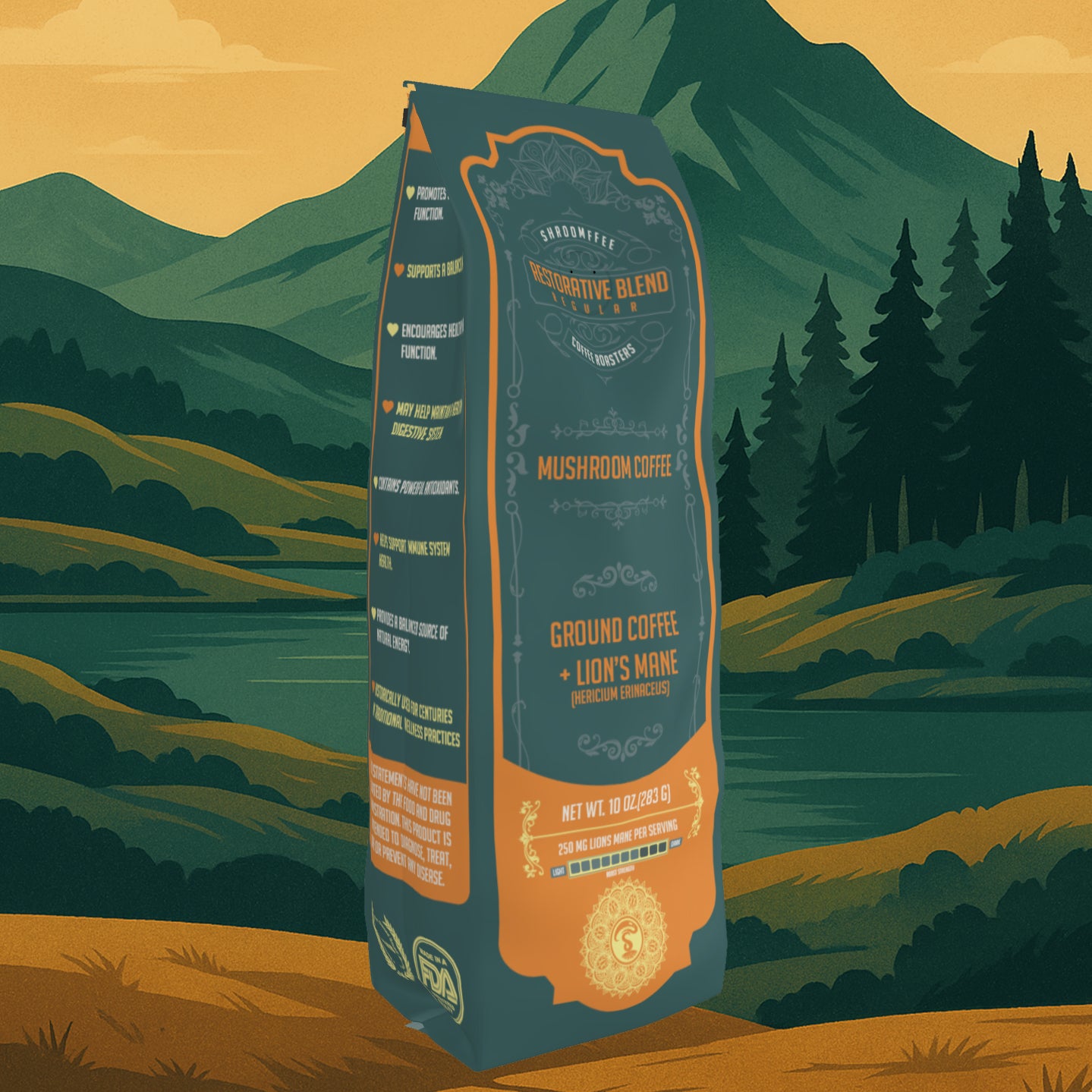 Enhanced with Lion’s Mane (Hericium erinaceus), this cup elevates your daily brew with compounds shown to support brain health, focus, and nerve regeneration. The result: a smooth, mind-awakening coffee that fuels both body and mind.
