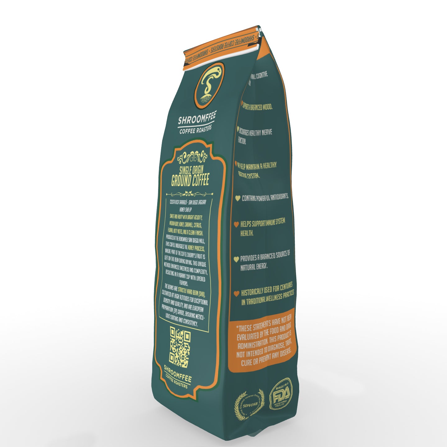 Experience the perfect fusion of Costa Rica’s finest specialty coffee and the cognitive power of Lion’s Mane mushroom. Shroomffee’s Lion’s Mane Coffee combines Sailor Bob Coffee’s Costa Rica Tarrazú Jaguar Honey—a single-origin Arabica grown between 1,200 and 1,800 meters (3,937–5,906 feet) in the legendary Tarrazú region—with a functional 250 mg Lion’s Mane mushroom extract equivalent per cup to promote focus, clarity, and mental performance.